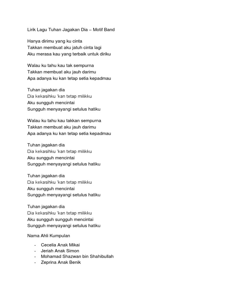 Lirik lagu Tuhan Jagakan Dia - Motif Band - YouTube