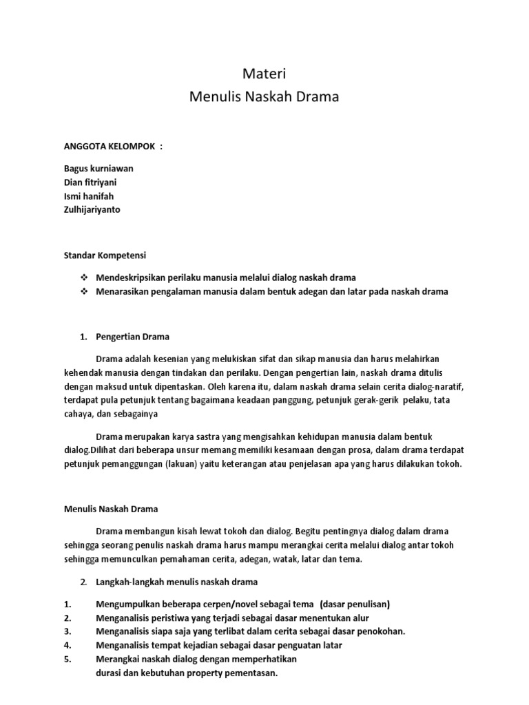 PDF) MENULIS NASKAH DRAMA Oleh Nurhadi (PBSI-FBS-UNY | Genjul Sambiloto - Academia.edu