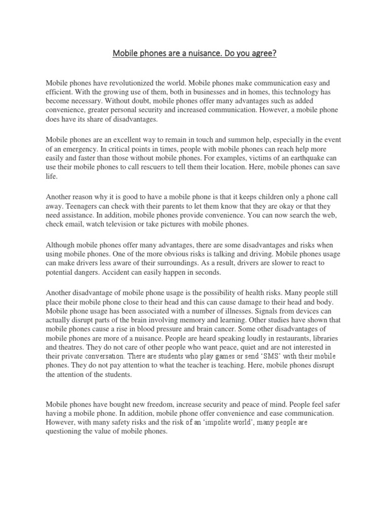 ESSAY) Mobile phones are a nuisance -Do you agree.docx | Mobile Phones | Telephone