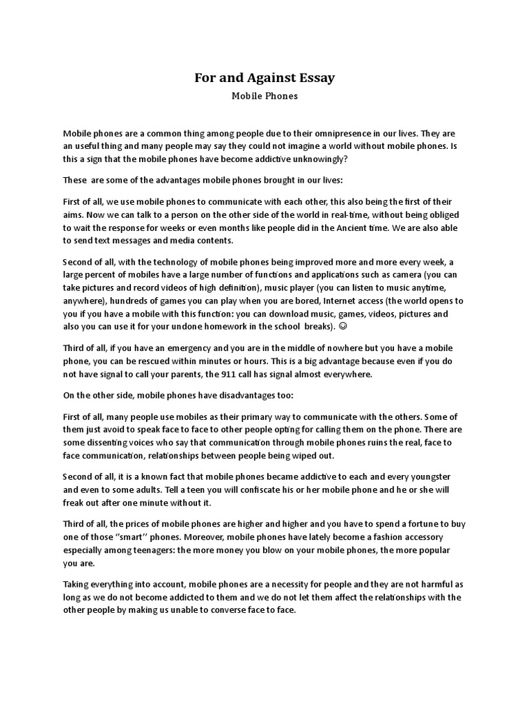 For and Against Essay-Mobile Phones.doc | Mobile Phones | Telephone