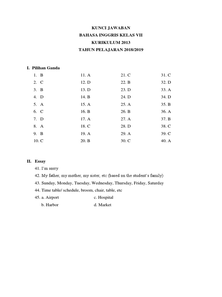 Soal Essay Bahasa Inggris Kelas 7 K13 Lengkap - 40+ Contoh Soal …