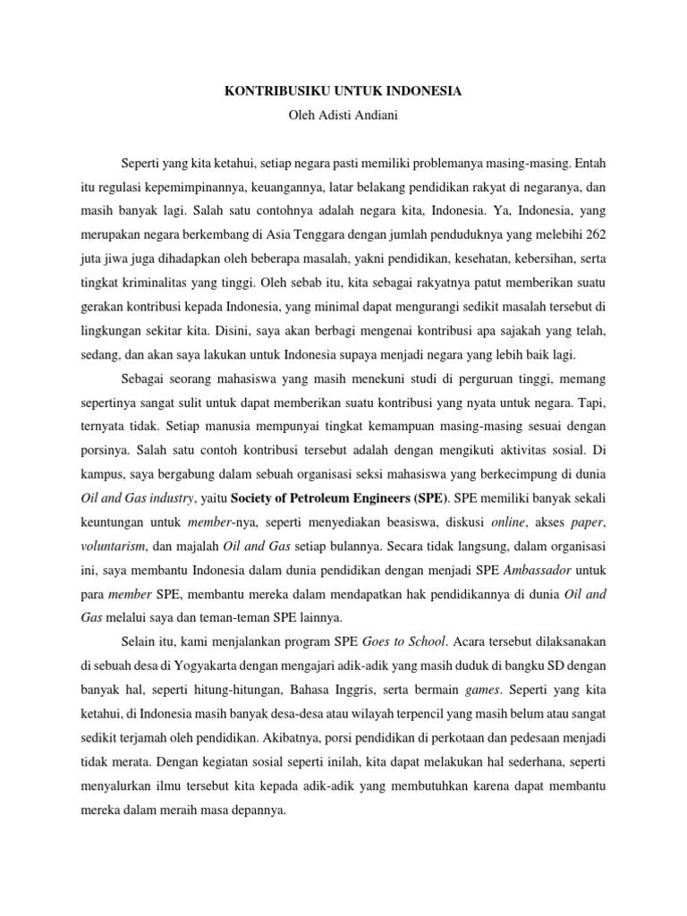 Essay tentang kontribusiku untuk indonesia / pspl.culture-quest.com