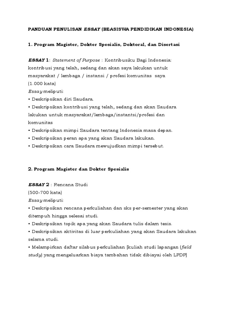 DOC) Panduan Menulis Esai: LPDP (Kontribusiku Bagi Indonesia | fiqna syani - Academia.edu