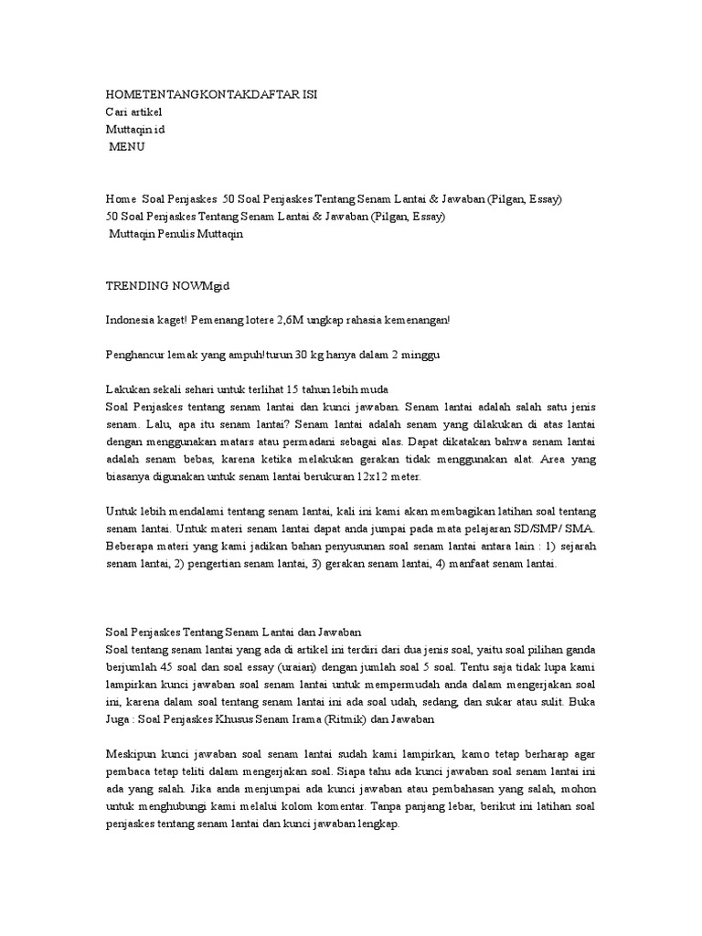 Contoh Soal Essay Penjaskes Beserta Jawabannya Kelas 9? Contoh …