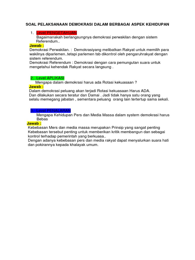 Soal Tentang Demokrasi dan Kunci Jawaban - Muttaqin id