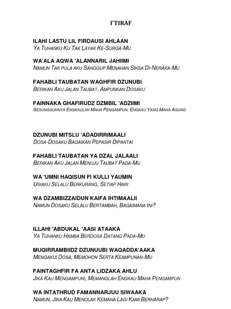 Mahfudz on Twitter: “Ilahi lastu lil firdausi ahla, wala aqwa’alan naril jahimi, fahabli taubatan waghfir dzunubi, fa innaka ghafiruz dzanbil ‘adhimi. (I’tiraf)”