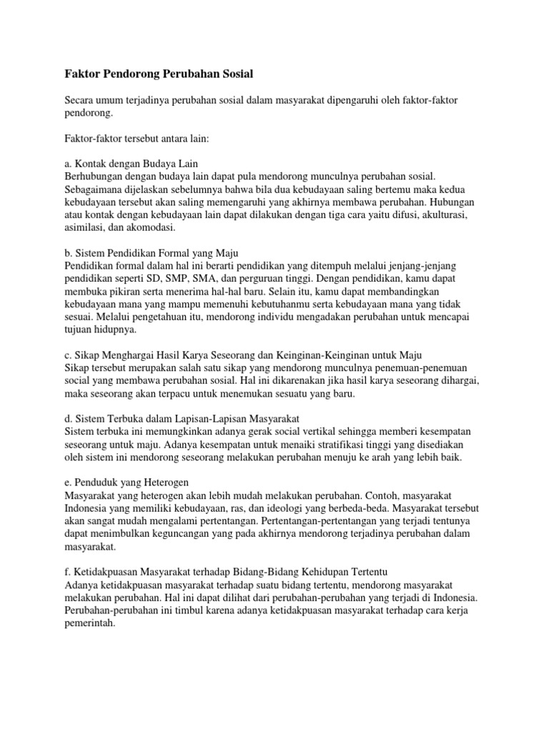 jelaskan 2 faktor pendorong dari perubahan sosial! - Brainly.co.id
