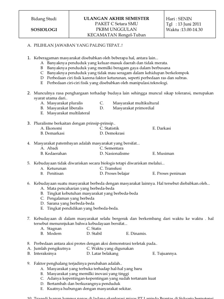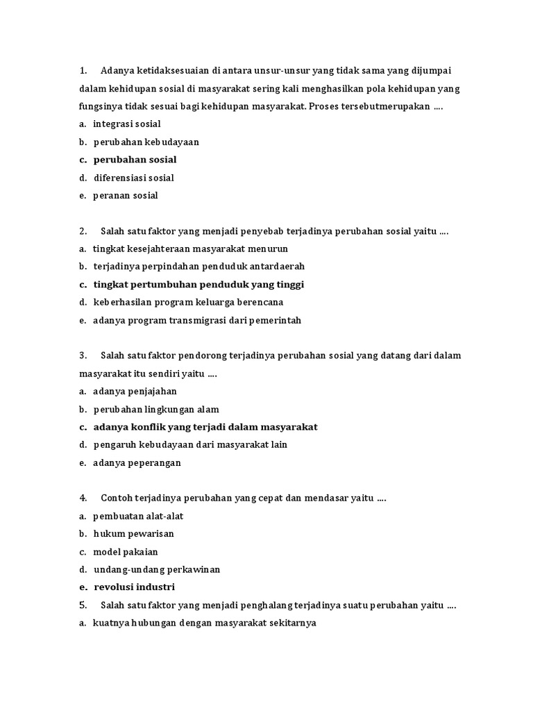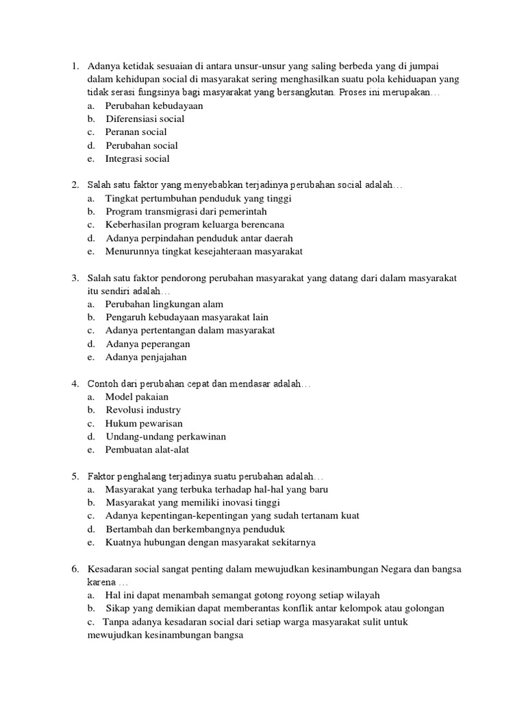 Soal Dan Jawaban Perubahan Sosial Beserta Dampaknya