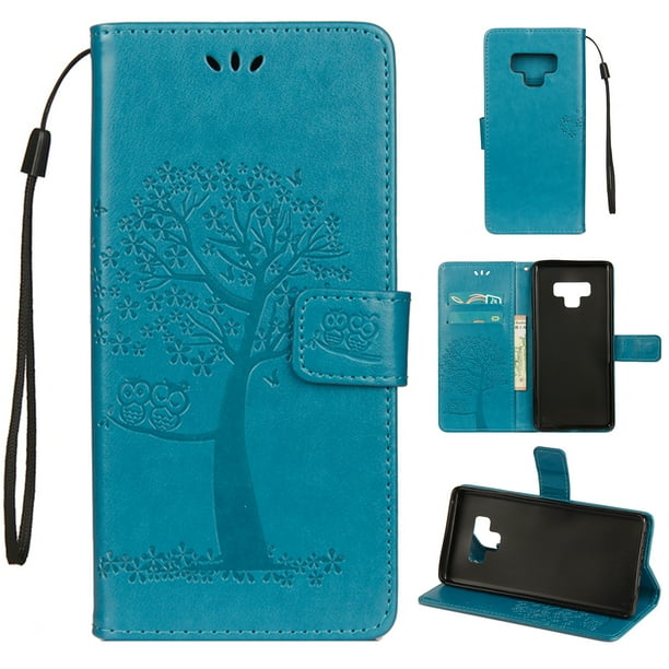Note 9 Case, Samsung Galaxy Note 9 Case - Allytech Premium Wallet PU Leather with Fashion Embossed Floral Tree Owl Magnetic Clasp Card Holders Flip Cover with Hand Strap, Blue - Walmart.com - Walmart.com