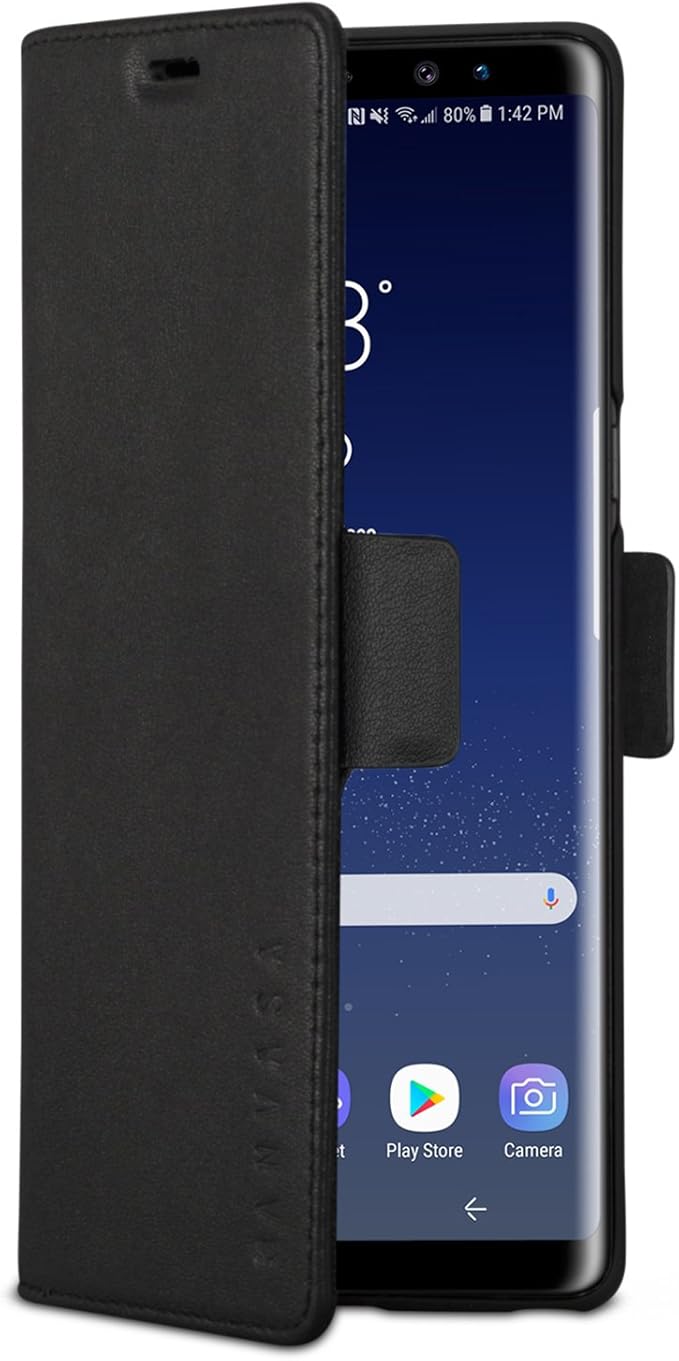 KANVASA Samsung Note 9 Leather Case Flip Cover Black Pro 2" Premium Genuine Leather Wallet Book Folio Case for the Original Samsung Galaxy Note9 - Ultra Thin with Magnetic Closure: Amazon.co.uk: Electronics