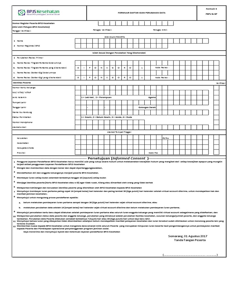 Contoh Formulir Perubahan Data Bpjs Kesehatan - Bagikan Contoh