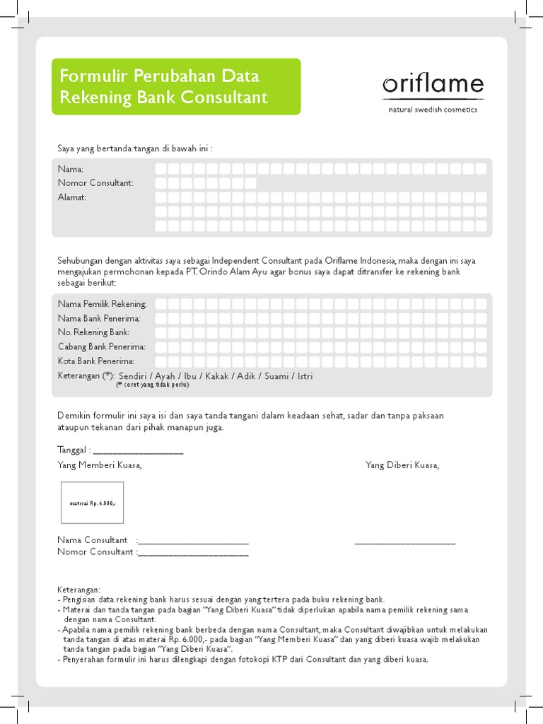 FORMULIR PERUBAHAN DATA PELANGGAN