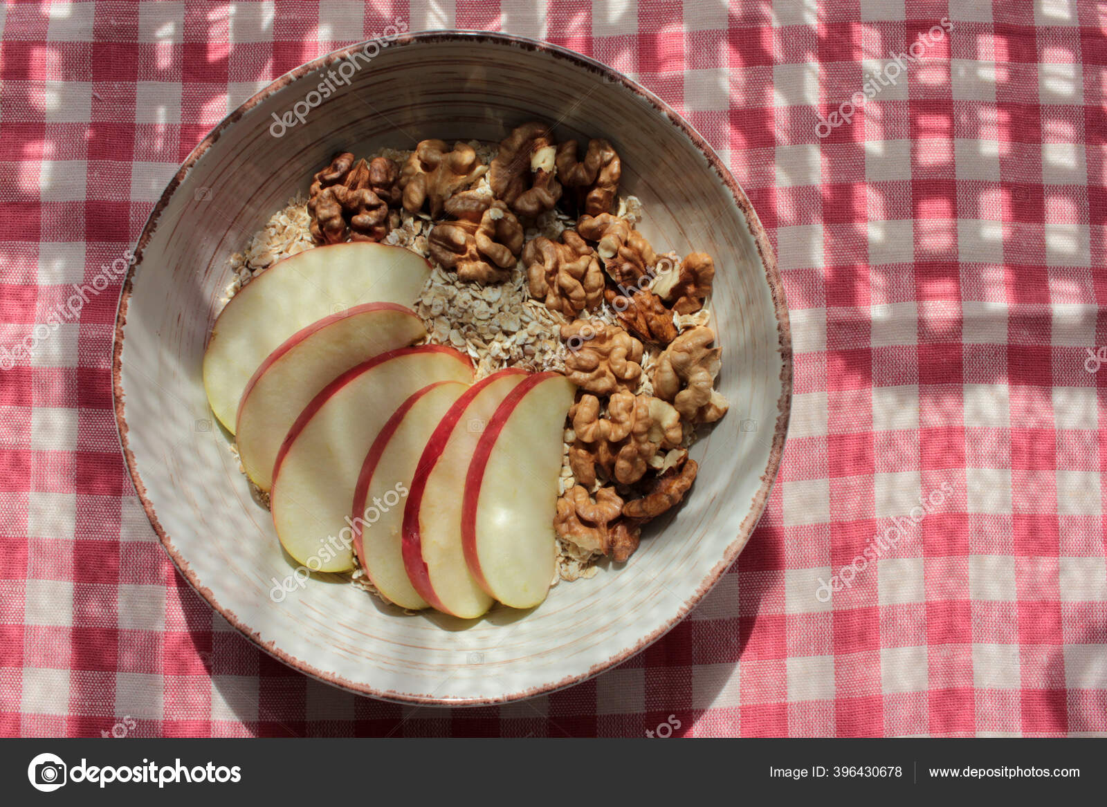 Kacang Kenari Sehat Red Apple Oatmeal Dalam Mangkuk Vintage Pada …