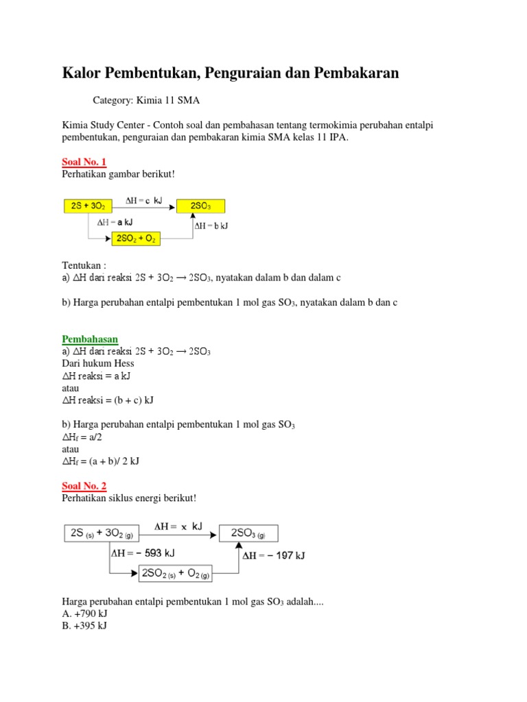 Soal Kalor Pembentukan Dan Penguraian