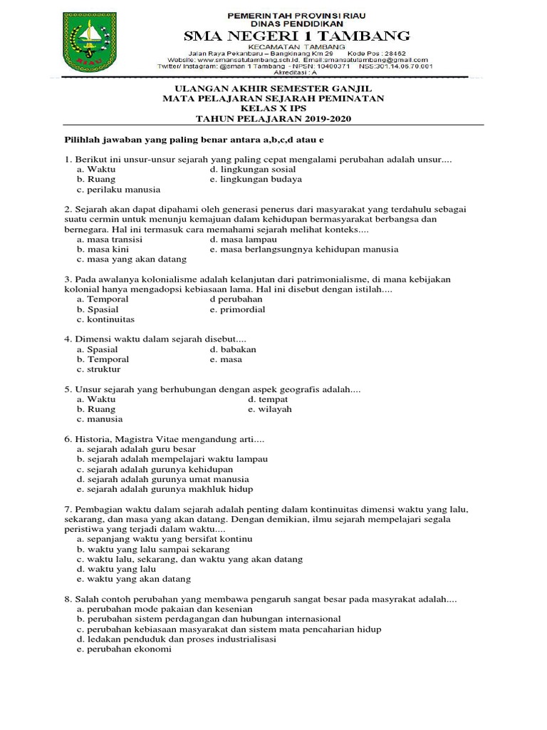 Soal Sejarah Peminatan x Ips 2019