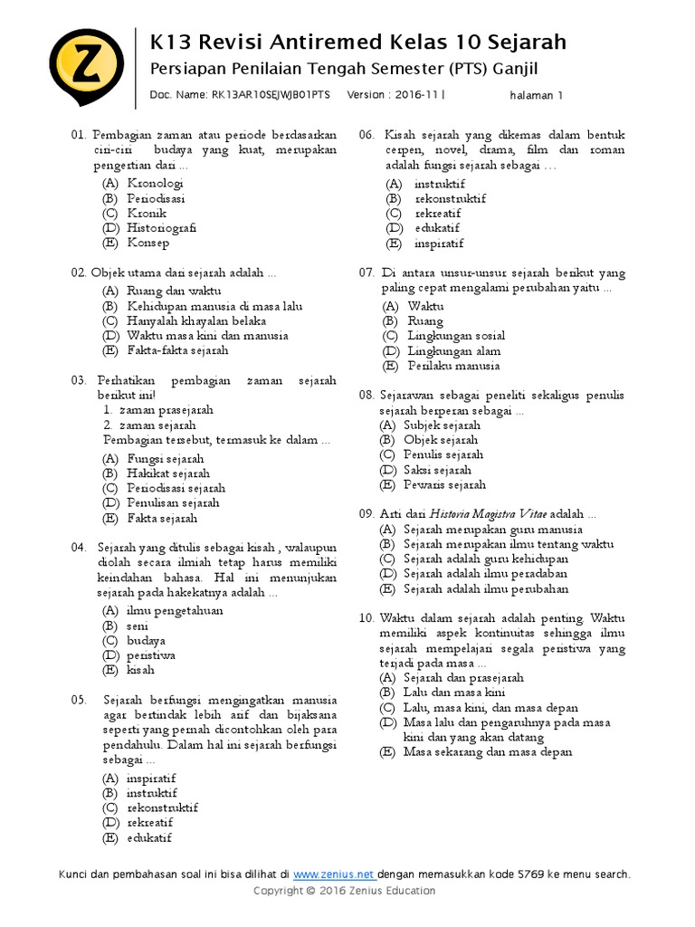 45 Soal dan Jawaban Sejarah Kelas 10 SMA/MA Semester 1 Kurikulum …