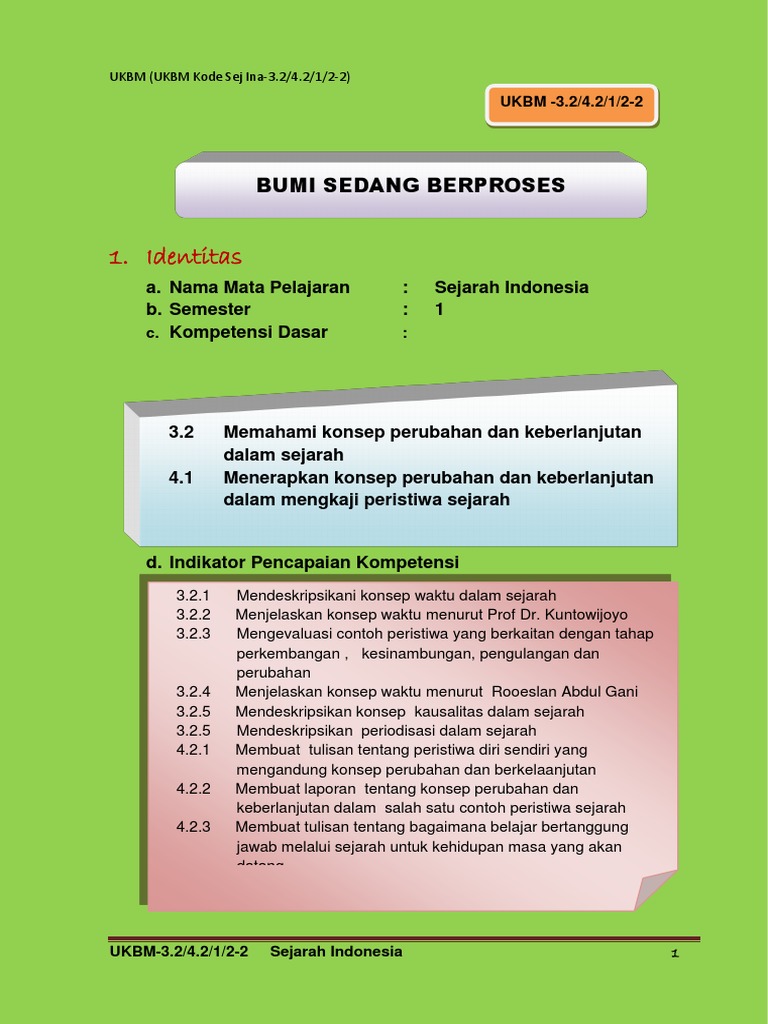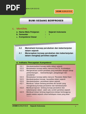 BUMI SEDANG BERPROSES. a. Nama Mata Pelajaran : Sejarah Indonesia …