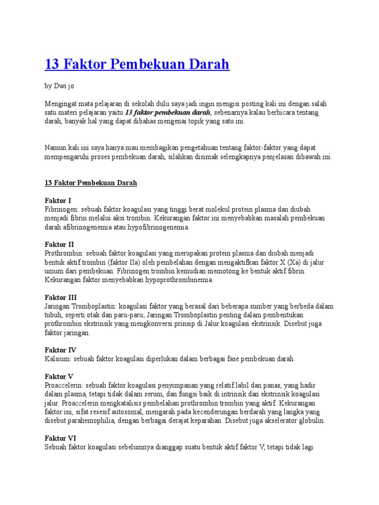 13 Faktor Pembekuan Darah