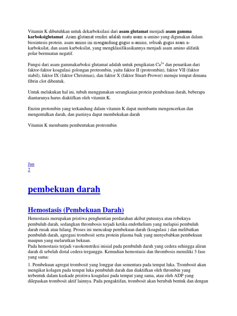 jelaskan peran vitamin k dalam pembekuan darah - Brainly.co.id