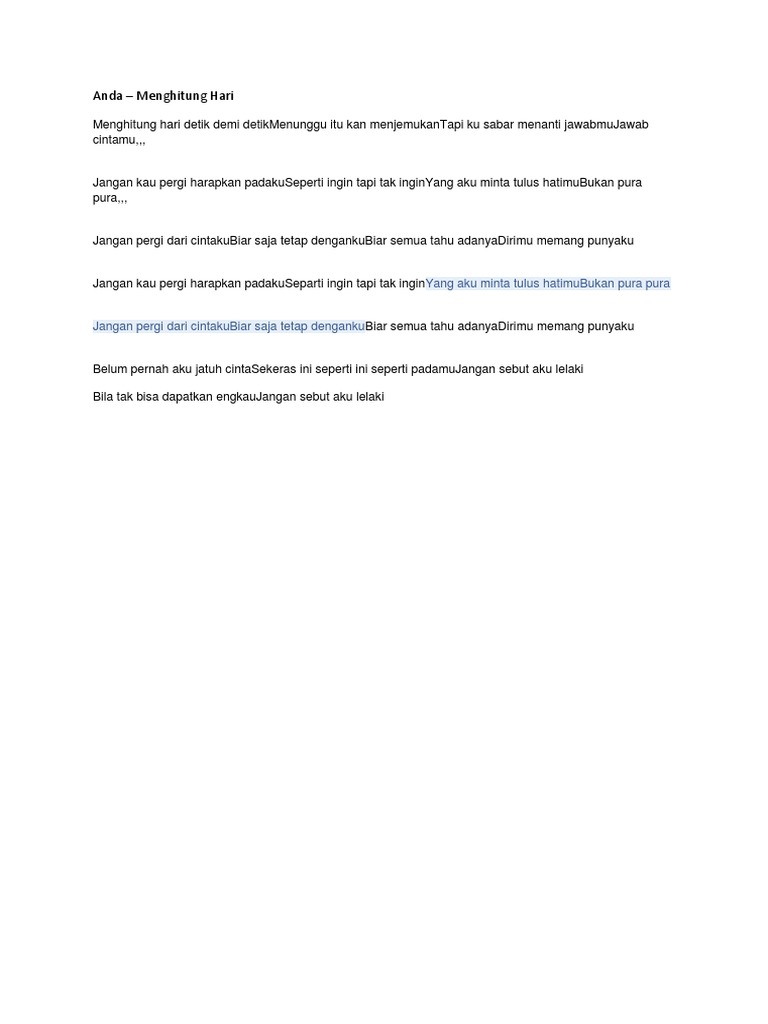 kumpulan lirik lirik lagu - Menghitung hari 2 - Wattpad
