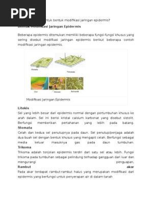 Jaringan Epidermis Dapat Mengalami Perubahan Menjadi Bagian Seperti Berikut Kecuali