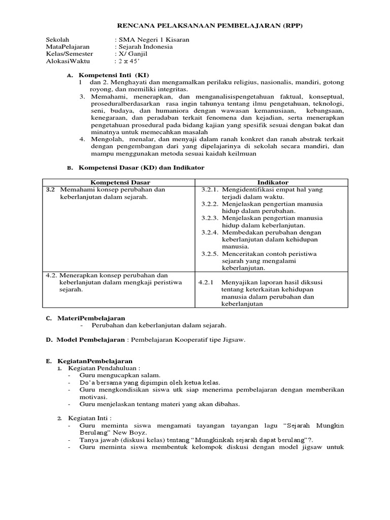 RPP Sejarah Pemintan Kelas X SMA Kurikulum 2013 Revisi | Info Ops …