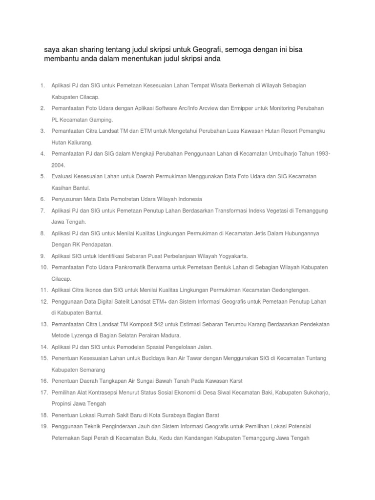 Judul Skripsi Geografi Fisik Doc - Pejuang Skripsi