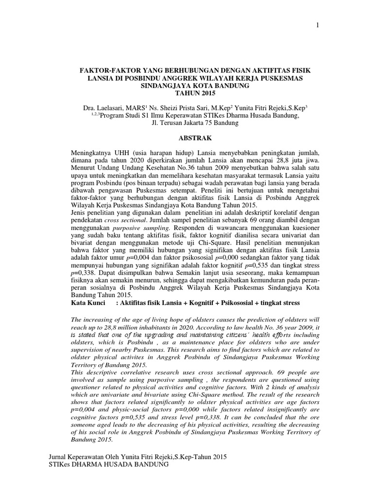 PDF) Aktivitas Fisik Memengaruhi Fungsi Kognitif Lansia