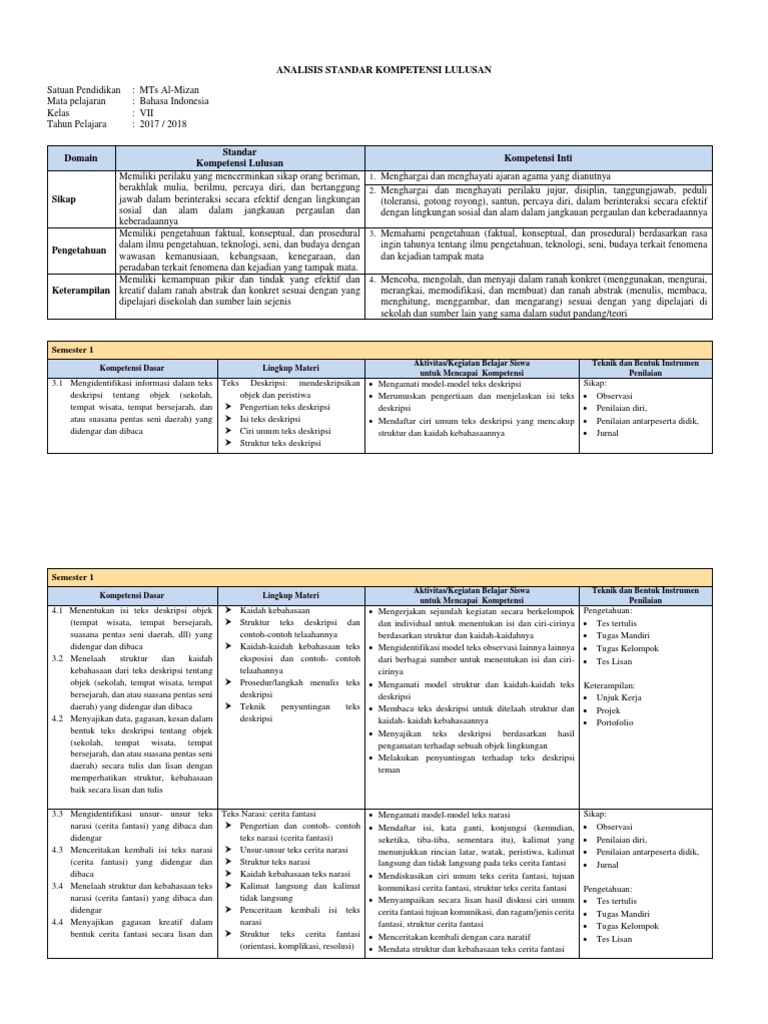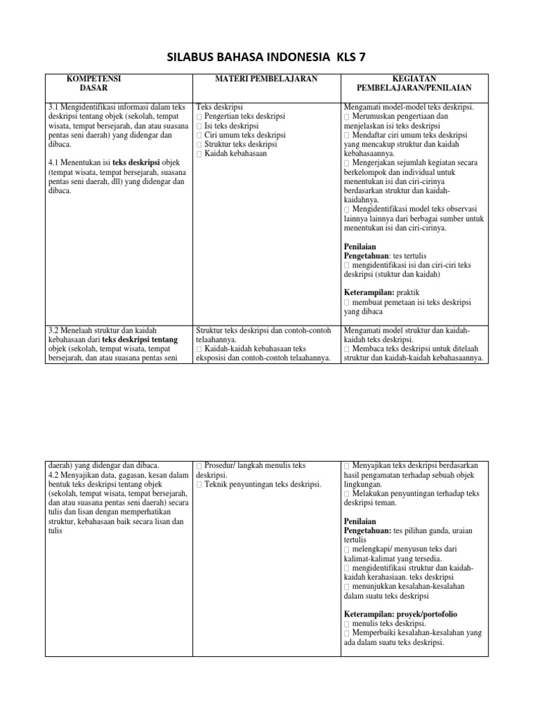 Silabus b. indonesia Kelas 7 kurtilas format revisi 2017