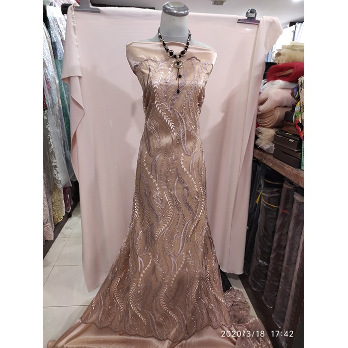 2.5m kain Brokat semi Perancis Warna Nude | Shopee Indonesia