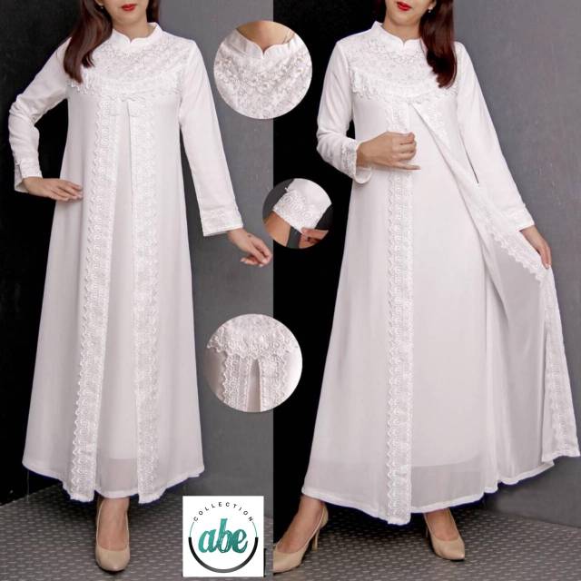 DRIZZLE_COLLECTION Gamis putih/sifon Seruti kombinasi brukat …
