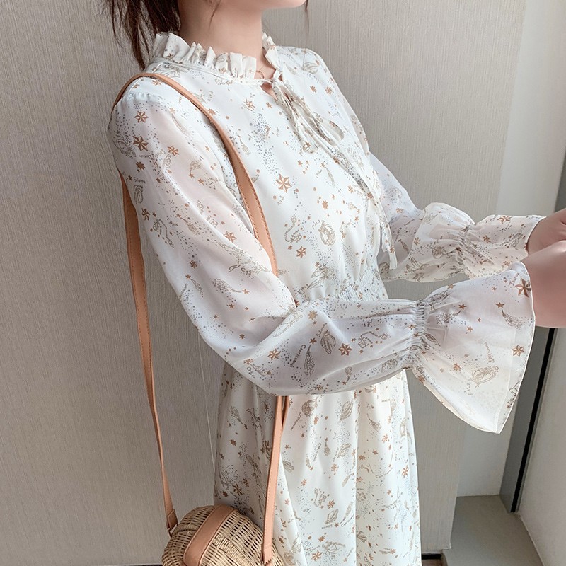 Dress Musim Semi / Semi Bahan Sifon Warna Putih Motif Bunga untuk …