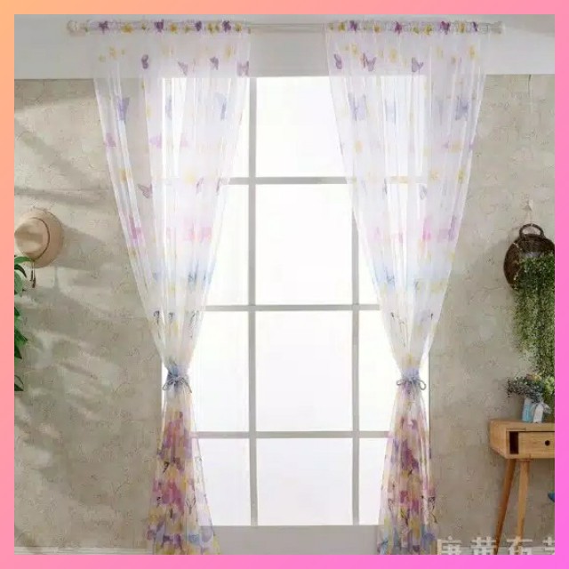 READY GORDEN MOTIF KUPU-KUPU TRANSPARAN GORDEN JENDELA GORDEN PINTU TIRAI KAIN PUAL PEMISAH RUANG | Shopee Indonesia