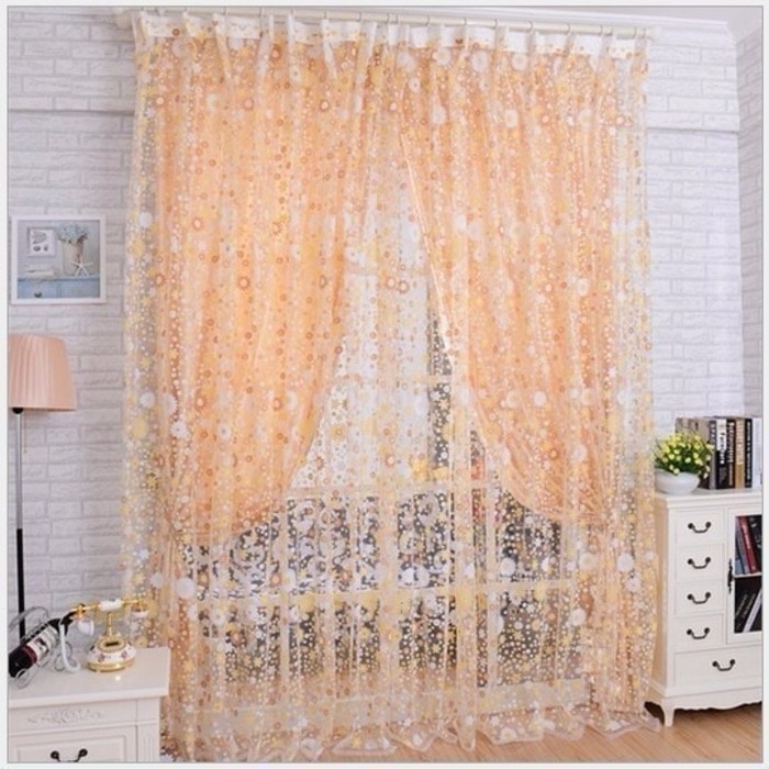 Gorden Kain Pual Transparan Motif Bunga, Tirai Kain Tule Pintu Jendela Kamar Tidur | Lazada Indonesia