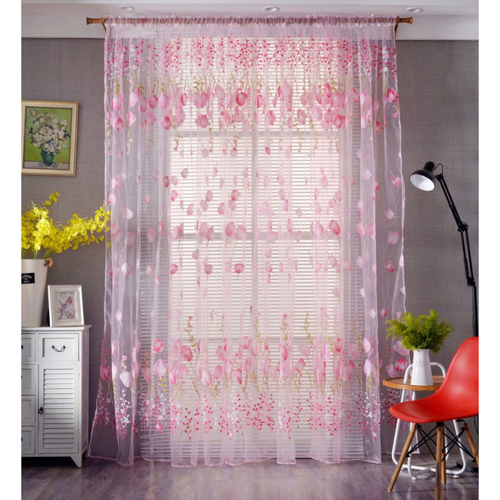 Jual Gorden Motif Bunga Tulip Transparan Tirai Kain Pual Pemisah Ruang - Kota Batam - HowToBasic | Tokopedia