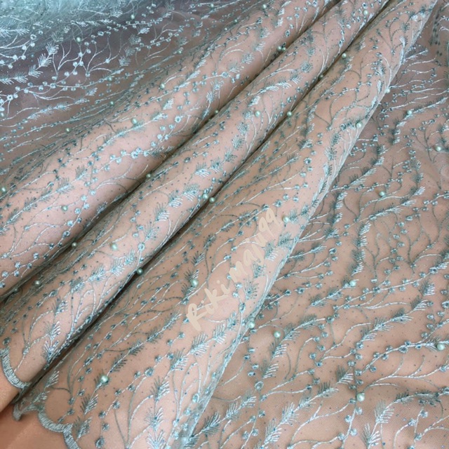 Kain Tulle akar mutiara/tulle bordir mutiara tebel | Shopee Indonesia