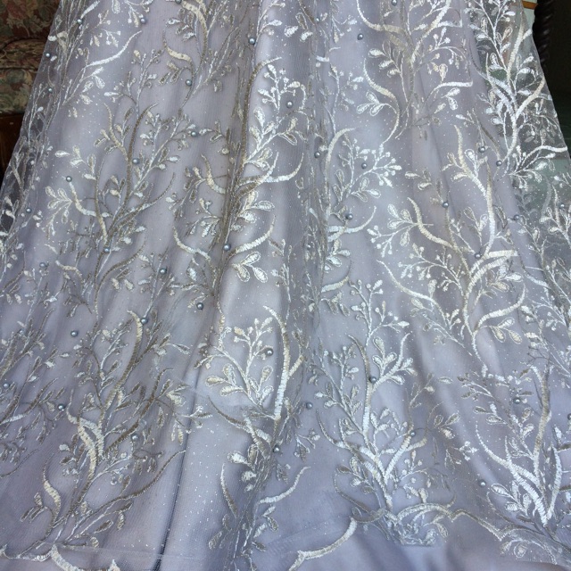 Kain Gaun/Kebaya Tulle Akar Metalic Payet Mutiara, Fesyen Wanita, Pakaian Wanita, Gaun & Rok di Carousell