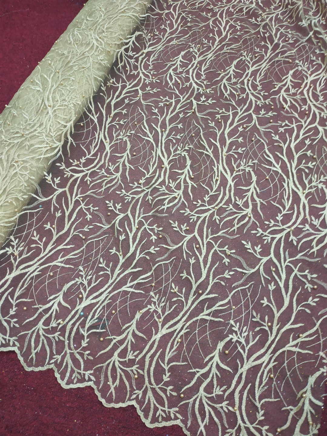 Shopee: Jual NEW.. Kain Tulle Bordir akar Mutiara / Tile pinggiran Terbaru ( Harga Per 0,5M )