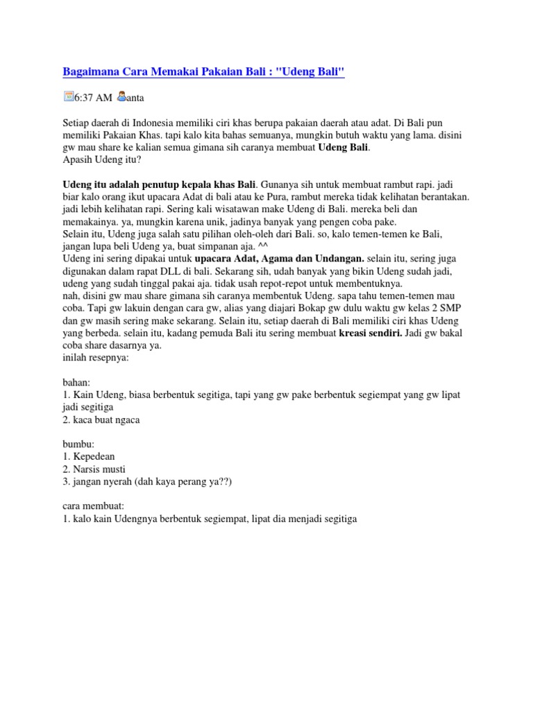 Udeng, Ikat Kepala khas Kaum Pria Pulau Dewata : Tradisi - Situs …