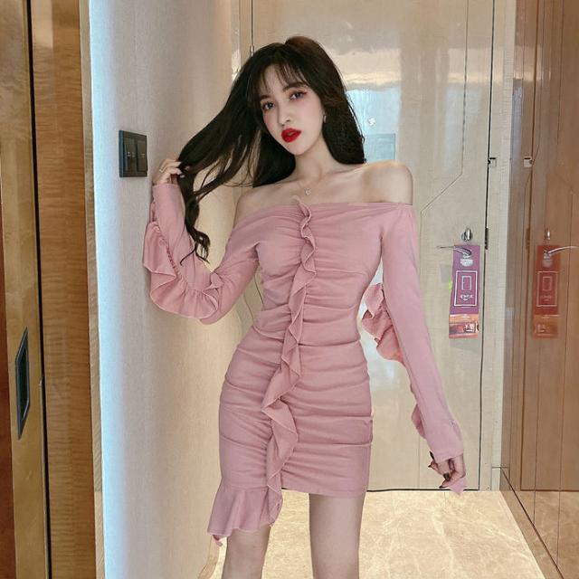 Dress Wanita Sexy Casual Model One Line Bahan Kain untuk Musim Gugur / Dingin | Shopee Indonesia