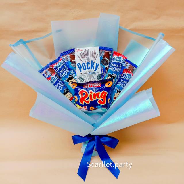 BUKET SNACK WARNA BIRU UNTUK WISUDA GRADUATION SIDANG SEMPRO UKANG TAHUN | Shopee Indonesia