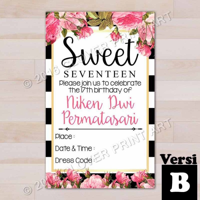 Ukuran Kartu Undangan Ulang Tahun Sweet Seventeen - Berbagai Tahun