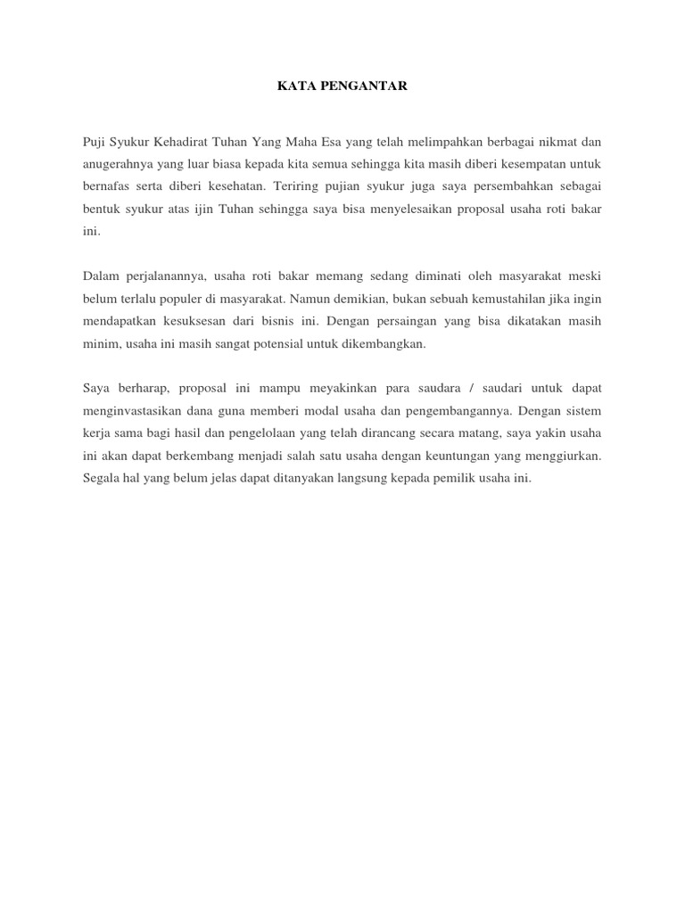 Contoh Kata Pengantar Proposal Usaha Roti Bakar - Berbagi Contoh Proposal