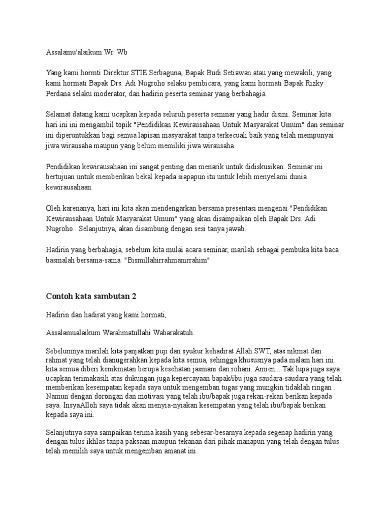 Contoh Kata Sambutan Seminar | Ilmu Pengetahuan Populer 3