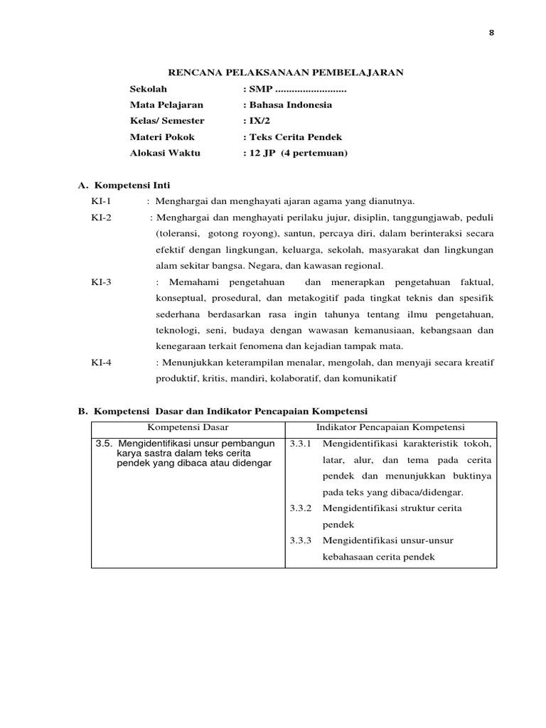 PDF) Contoh RPP Teks Cerita Pendek SMP Kelas VII | isnaini shaleh - Academia.edu