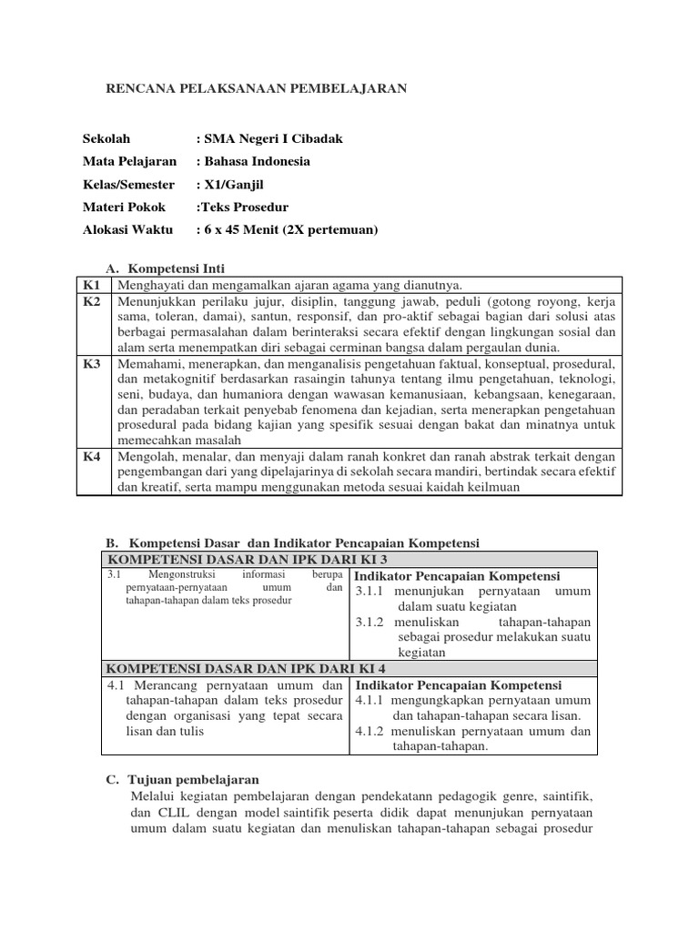 RENCANA PELAKSANAAN PEMBELAJARAN (RPP) .Web viewTugas 1 Berdasarkan penelaahanmu terhadap teks prosedur