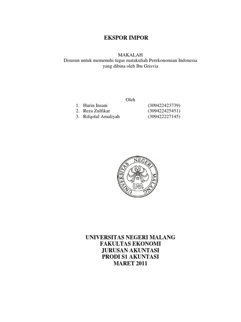 DOC) MAKALAH EKSPOR IMPOR INDONESIA | Cassandra Claudia - Academia.edu