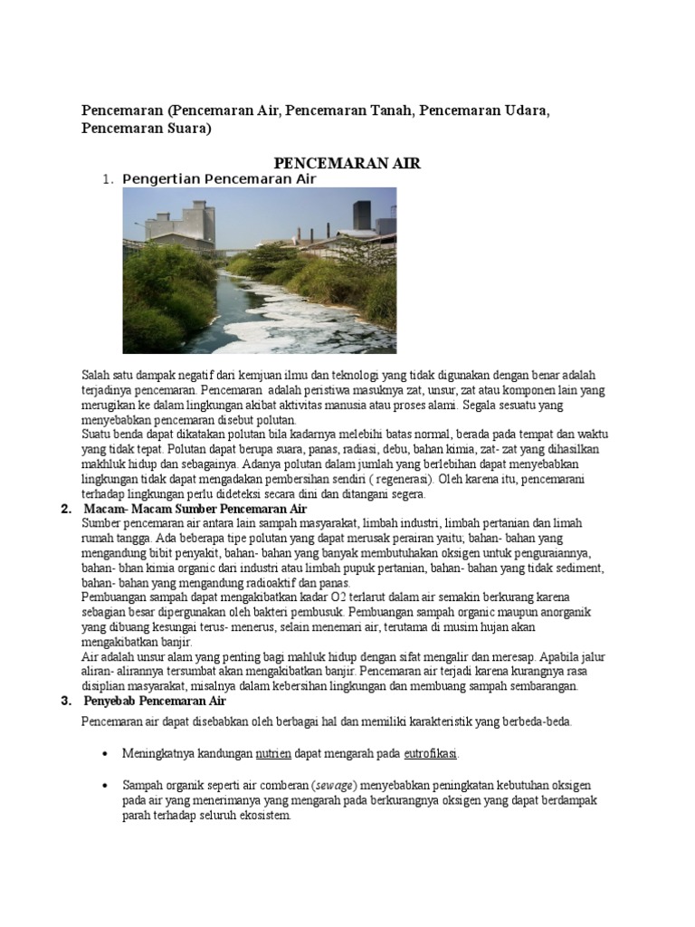 Pencemaran Lingkungan, pencemaran air, pencemaran tanah …