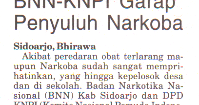 Kliping Koran Bhirawa BNN Kabupaten Sidoarjo bersama KNPI Garap …