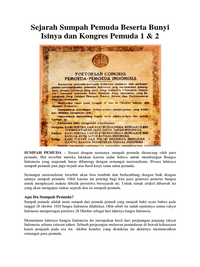 Pin oleh Juhanter Sirait di sumpah pemuda | Ikrar, Teks, Gambar